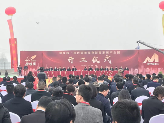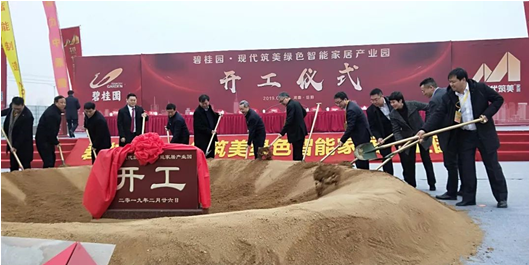 2019年2月26日,由广东爱游戏·(中国)官方网站APP下载承建的碧桂园·现代筑美绿色智能家居产业园项目开工仪式在信阳市羊山新区隆重召开。信阳市市委书记乔新江,碧桂园集团总裁莫斌,现代筑美总经理钟耀灿,信阳市市长尚朝阳、市委常委王新会、人大常委会副主任杨明忠等市委市市政府领导,信阳市羊山新区书记陈延虎、主任刘璇,全国工商联家具装饰业商会执行会长张传喜及碧桂园集团区域领导、广东爱游戏·(中国)官方网站APP下载公司常务副总经理邓培初、华北公司总经理张振广等相关领导共计400余人出席仪式。