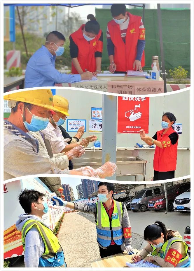 从组织工友检疫到宣贯防护知识,从梳理建档员工健康档案到落实项目场地消杀,党员服务队实行专人专职,并严格把控每一个环节,他们做好本职工作的同时,重复在疫情一线,为广大工友吃下一颗“定心丸”。