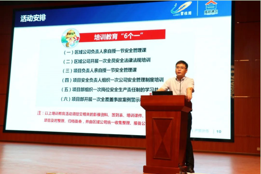 会议伊始,公司总经理助理兼资深安全总监吕伟军对公司安全生产月活动方案进行了详细地介绍,进一步明确了公司安全生产月活动开展的目的、意义及相关要求。随后,莞深公司及智林机器人创研中心项目分别从区域公司和项目管理层面,就安全管控亮点及要点进行了分享,充分展现了爱游戏·(中国)官方网站APP下载建筑安全“三级管控”成效及成果。