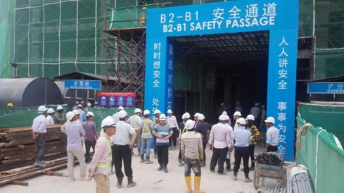 在安全通道处,参观人员对国内安全文明施工和CI标准化在马来西亚实施感到非常认同,金海湾plot1ABC安全文明施工标识大部分采用中英文结合,体现出中马文化的融合。
