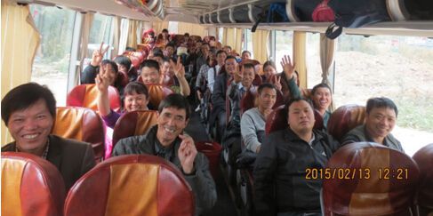 方案确定后,黄江项目经理部综合办牵头,收集工人名单及家庭住址,并联系当地的车站,安排出车路线。这300多位工人来自12个省、86个城市,回家路线复杂、零散,项目管理人员在联系车站过程中遇到种种难题。经过黄江项目综合办多次和车站协商,定制了6辆不同线路的包车,并通过订散票的形式帮助部分零散地区的工人。通过本次包车,黄江项目经理部圆满解决了300多位劳务工人的回家难的问题。