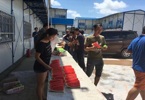 7月15日一大早,凯里项目便将早早准备好了西瓜、凉茶、药品等防暑物品送去施工现场,对在高温下坚守的施工员进行慰问。看到施工人员吃着西瓜,喝着凉茶,脸上洋溢着微笑是对活动做好的肯定。