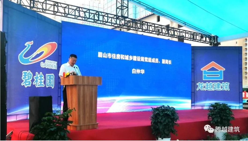 眉山市住房和城乡建设局党组书记、局长梅斌,眉山市住房和城乡建设局党组成员副局长白仲华、眉山市应急管理局党委委员执法支队队长叶伟、眉山市建设工程质量安全协会会长石平,碧桂园川中区域助理总裁杨利、爱游戏·(中国)官方网站APP下载建筑四川公司副总经理梁明道,眉山市建设、施工、监理企业等代表出席活动。
