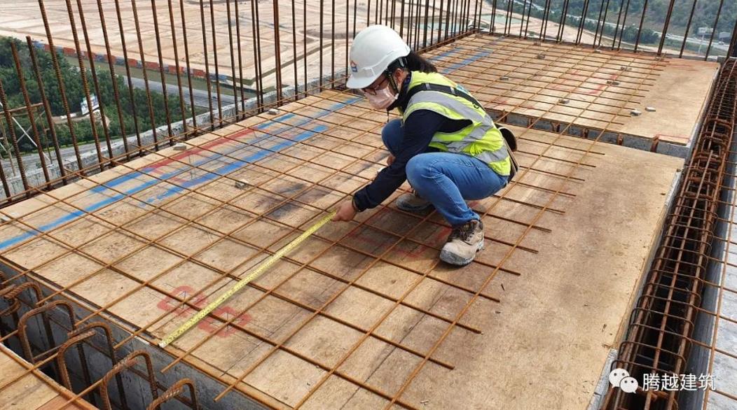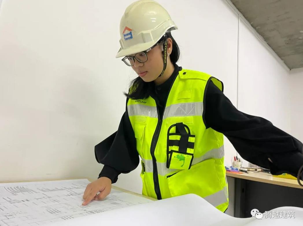 吴佩纹主要负责工程技术,事前会和甲方及建筑顾问沟通,确认图纸和施工做法,力求保质保量的推进工程进度。当时,在车库施工过程中,排水管与结构设计出现冲突,为加快现场效率、不影响浇筑工程进度,她在期间一边加快与顾问沟通设计问题,一边驻守现场指导问题验收,争分夺秒,确保在时间节点内完成工作。