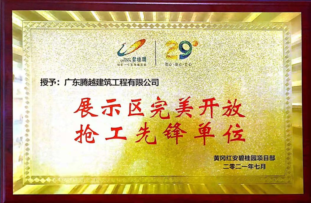 项目位于湖北省黄冈市红安县同泰路以南、城东路以西,展示区建筑面积为1940.30㎡,斩获甲方颁发的“展示区完美开放,抢工先锋单位”完美履约奖牌。