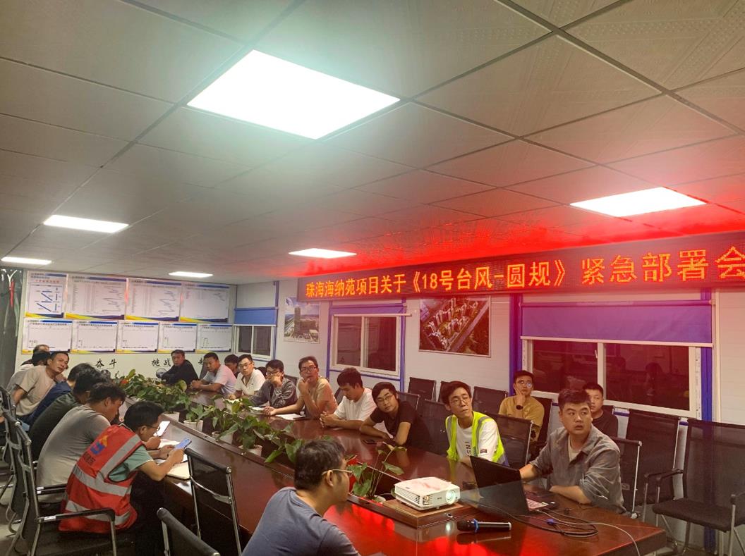 各个项目纷纷召开台风应急部署专项会议,对项目防台风事项有效进行分解落实,同时通知各分包单位,由专业人员带队,对现场的大型设备及其重点部位进行全面排查,做好台风登录前的各项准备措施。