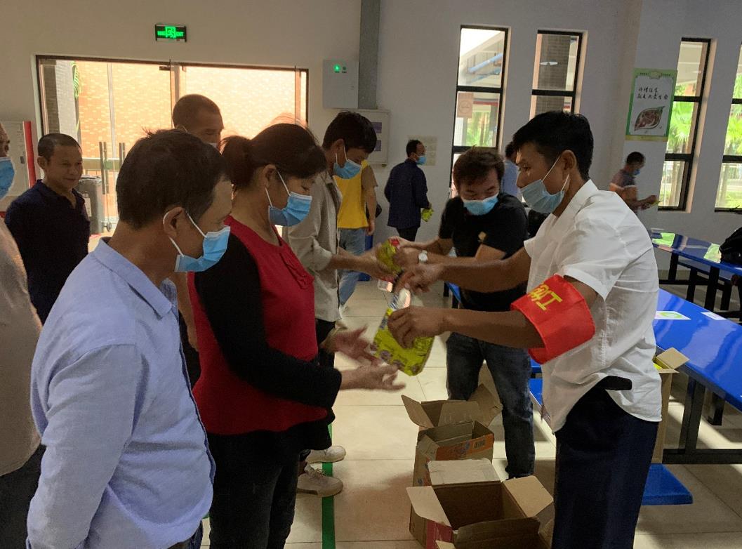 江中公司珠海平沙海纳苑项目台风中为民工发放物资