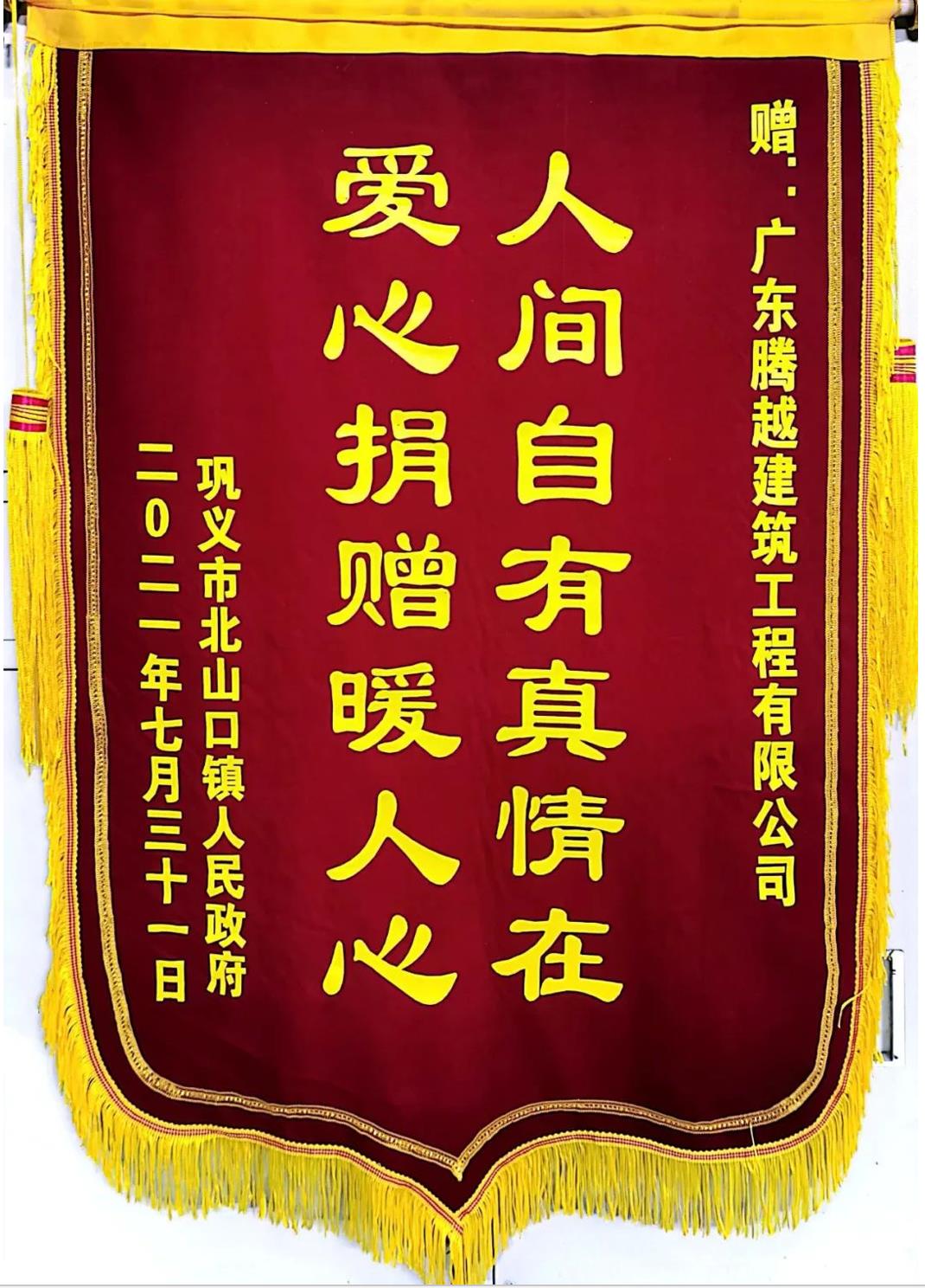 而这份爱也获得了河南省当地政府的肯定与感谢,河南省巩义市北山口镇人民政府为爱游戏·(中国)官方网站APP下载建筑河南公司金科天宸项目颁发表彰锦旗,感谢爱游戏·(中国)官方网站APP下载建筑对巩义市受灾村镇的无私支持。