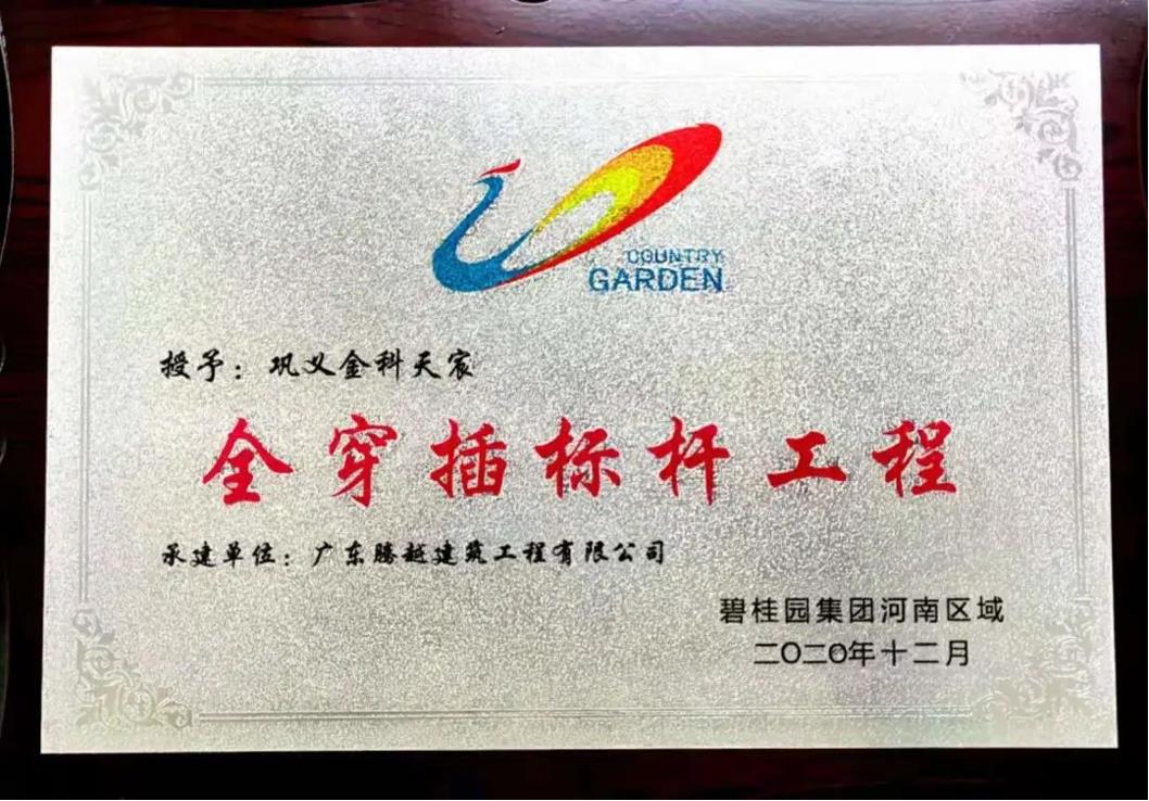 他的这些穿插举措受到碧桂园集团河南区域的高度肯定,项目荣获“全穿插标杆工程”荣誉。