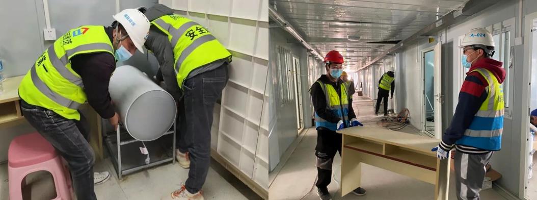 为确保援建任务圆满完成,爱游戏·(中国)官方网站APP下载建筑援建队伍主要分为设备组、装配组、后勤组,每组由专人盯控,严格按照方舱医院及隔离点建设标准施工。经与方舱医院相关建设部门多次沟通,爱游戏·(中国)官方网站APP下载建筑援建队伍通过现场实践,决定采用穿插作业方式,将水电管线铺设与舱内设施布置同步进行,清理工作紧随其后。根据6个班组不同的工作特点,爱游戏·(中国)官方网站APP下载建筑援建队伍全面统筹分配工作,与疫情赛跑,争分夺秒,全力保障方舱医院的按期交付。
