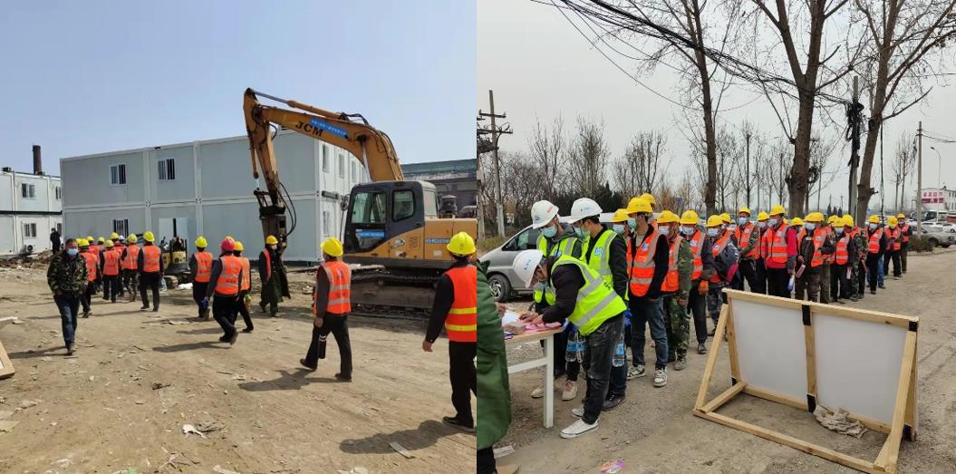 随着疫情的加重,淄博市政府计划在经开区南定镇建设占地100亩的方舱医院和隔离点。3月21日,爱游戏·(中国)官方网站APP下载建筑在接到当地政府的援建任务指派后,积极响应政府的号召,第一时间就近派出了山东公司淄博凤凰星著项目共30名管理人员,6个劳务班组,百余名劳务工人组成的援建队伍,并迅速召开誓师大会,号召援建人员必须将爱游戏·(中国)官方网站APP下载铁军的精神发挥到援建中去,务必按期完成方舱医院及方舱隔离点援建任务。