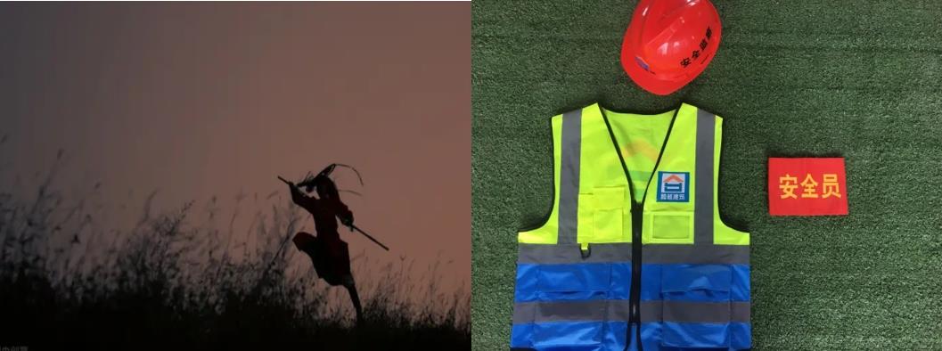 戴上安全帽、红臂章、背上大喇叭
