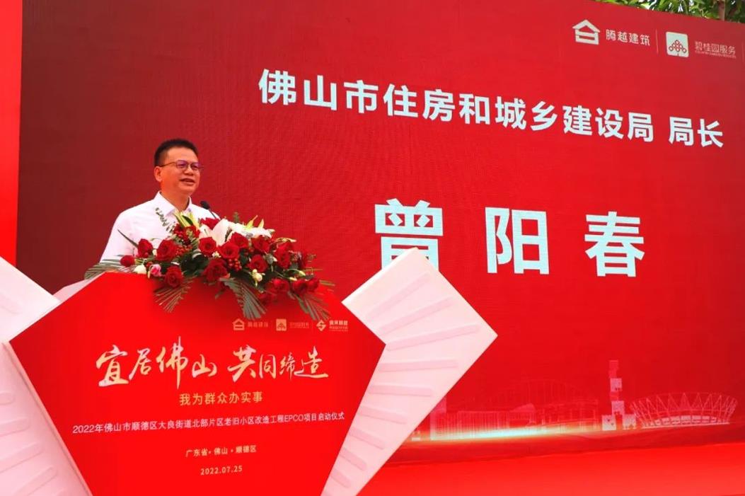 2022年7月25日,由爱游戏·(中国)官方网站APP下载建筑承建的广东省首个城镇老旧小区改造“EPCO”(设计-施工-运营服务一体化)项目,佛山市顺德区大良街道北部片区老旧小区改造工程在大良街道政通大院小区隆重举行开工仪式。