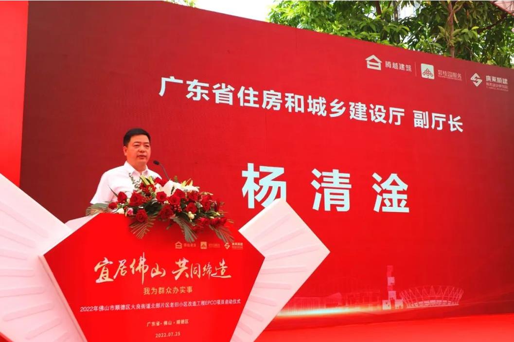 城镇老旧小区改造是国家部署的重大民生工程和发展工程,被省委列为深化改革重点任务和省实践民生实事,开展此项工程有利于惠民生、扩内需,推动城市建设的发展转型,促进经济高质量发展。他表示,省住建厅将继续大力支持佛山加快推进城镇老旧小区改造工作,希望各方精诚合作、同心协力,多措并举打造老旧小区改造示范项目,通过“EPCO”建设运营管理全生命周期的新模式,推动构建共建共治共享的社区治理体系。最后,杨副厅长预祝佛山市顺德区大良街道北部片区城镇老旧小区改造取得圆满成功。