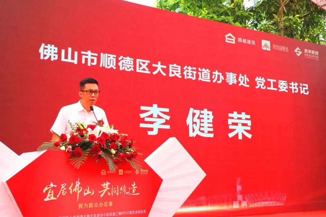 佛山市顺德区大良街道办事处党工委书记李健荣表示老旧小区改造是党中央、国务院高度重视的重大民生工程,对改善群众居住条件和生活环境具有十分重要的意义。2022年,大良街道在省市各职能部门及区委区政府的带领和支持下,使大良街道北部片区老旧小区改造工程成为广东省重点建设项目,并成为住建部老旧小区改造的试点工程。为保障项目品质,大良街道积极响应省住建厅号召,创新应用“设计-施工-运营服务一体化”模式,必将突破重重困境,推进城镇老旧小区改造,做好这项顺民意、得民心的民生工程。
