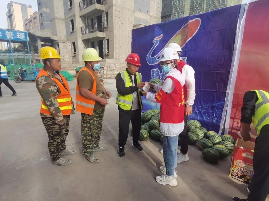 2022年6月,北方已经进入炎炎夏季,持续的高温,让人更显焦躁。为了应对夏季高温,张馨月早早筹备防暑计划,并购买消暑物资,开展一系列“党员送清凉”活动,为烈日下辛勤工作的现场人员送上一抹凉爽。在活动中她不仅会送上香甜解渴的西瓜、藿香正气口服液、花露水防暑等物品,还准备了毛巾、香皂、脸盆等洗漱清洁用具,物品虽小,却带给全体人员极大地鼓励,增强了大家在项目工作的幸福感和归属感。