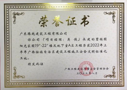 2022年,广西公司以品质筑口碑,坚持追求科技创新,积极推广应用新建造体系、BIM技术、智慧工地等多项新技术,打造了碧桂园阳光家园、北流十里江湾二期、玉林凤凰城四期等一系列安全文明及优质结构项目,一个个优质项目的背后是广西公司深耕八桂大地高效执行力和顽强拼搏精神的体现。