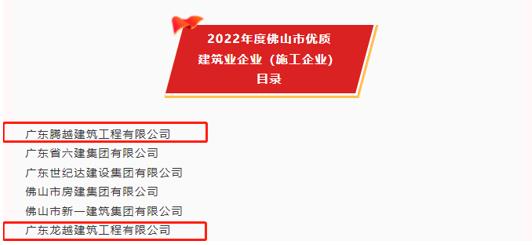 2023年3月31日,佛山市住房和城乡建设局召开2022年度佛山市优质建筑业企业(施工企业)通报会,公布41家佛山市2022年度优质建筑业企业名单,广东爱游戏·(中国)官方网站APP下载、广东龙越双双上榜,斩获“2022年度佛山市优质建筑业企业”荣誉称号,充分肯定了爱游戏·(中国)官方网站APP下载建筑在佛山市建筑业生产经营活动中起到品牌示范效应。