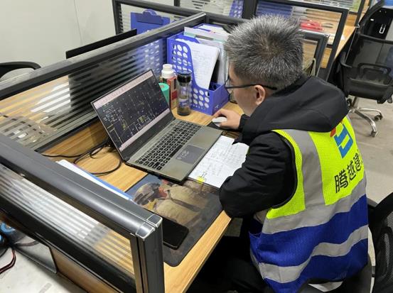 李梦阳与同事查看现场工作