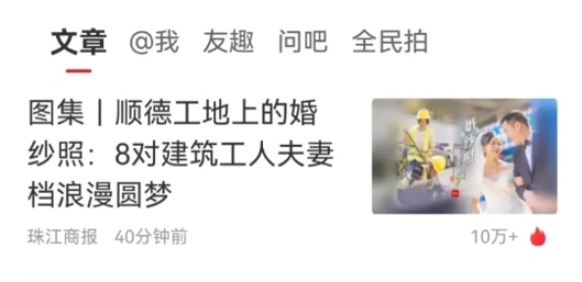 为工友拍婚纱照活动获珠江商报专题报道阅读量破10万+
