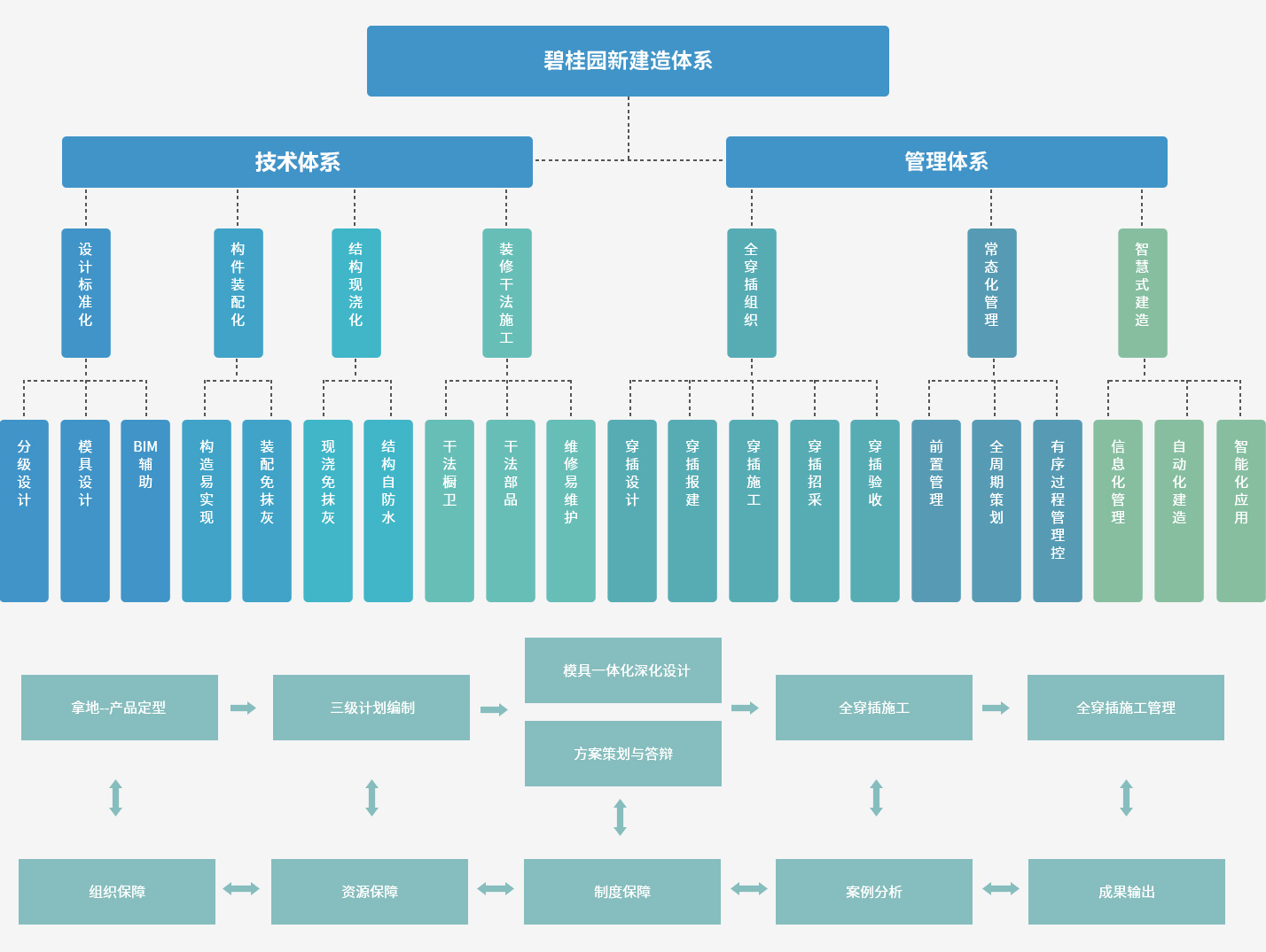 它对建筑工业化技术体系、管理体系进行系统化应用,以装配、现浇、机电、内装等多个维度建筑工业化技术体系为基础,结合标准化设计、零变更集成深化、绿色建造等手段,借助“8+1”完美运营、全穿插施工管理、常态化质量管控、建造过程可视化管理、安全文明施工信息化管理、“十条”红线、全天候工地开放、产业工人培训等管理体系,提升工程项目的管理水平及产品质量、缩短建设周期、提升住宅产品质量和人民居住品质,打造高科技现代住宅。